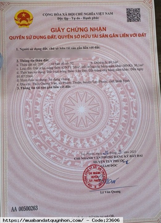 Khu vực: | Thôn Quảng Vân, Xã Phước Thuận, Huyện Tuy Phước |