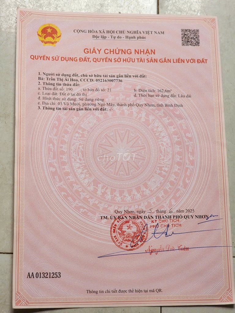 Quý vị đang xem nội dung tin rao ''Chính chủ cần bán đất mặt tiền võ mười p. ngô mây trung tâm quy nhơn'' quý vị cần thêm thông tin hãy liên hệ với chúng tôi. Xin cảm ơn đã xem tin.