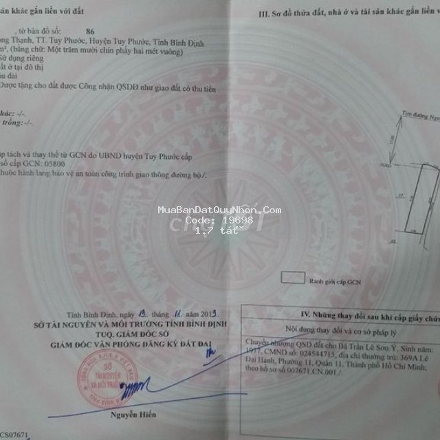 Bán đất thổ cư 284,9 m2- đường nguyễn huệ- tuy phước
