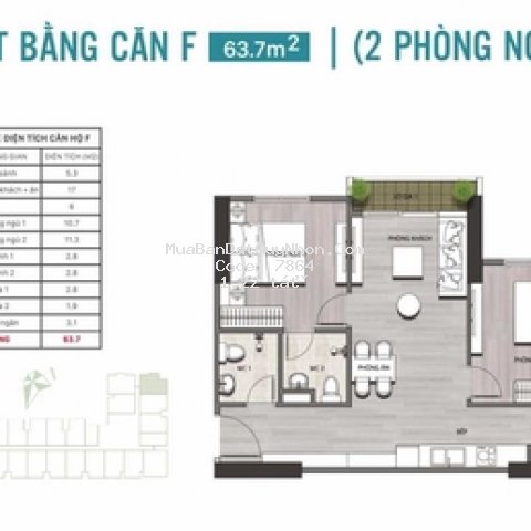 Diện tích: 64 m2