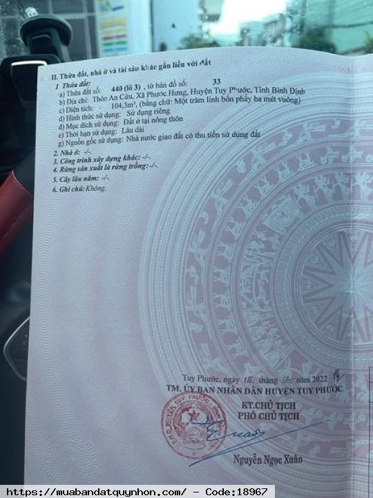 Bán đất Phước Hưng_Tuy Phước