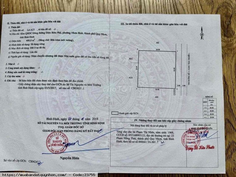 Quý vị đang xem nội dung tin rao ''Cần bán đất diện tích 400m2 (20x20) tại trung tâm thành phố quy nhơn'' quý vị cần thêm thông tin hãy liên hệ với chúng tôi. Xin cảm ơn đã xem tin.