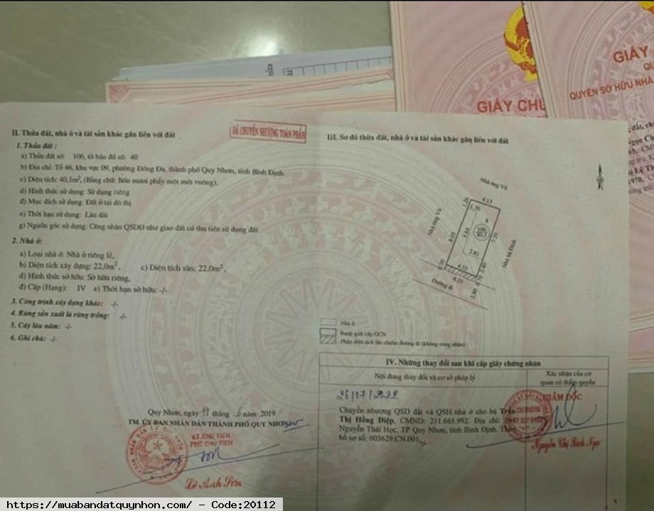 Cần bán đất đường nội bộ cầu chữ y view sông hoa lư - P Đống Đa - tp Quy Nhơn - Diện tích 40m2 - Giá 2 tỉ 180 triệu