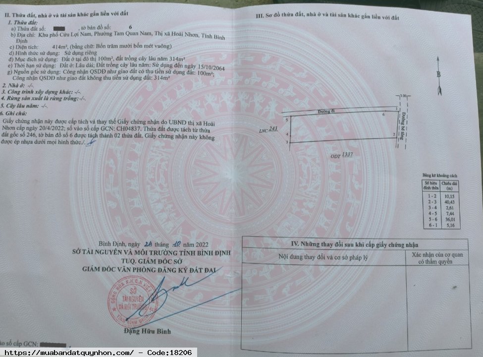 • Diện tích: 10×40 (100m thổ cư) 414m2