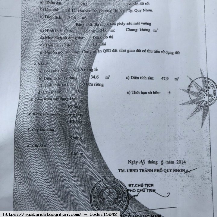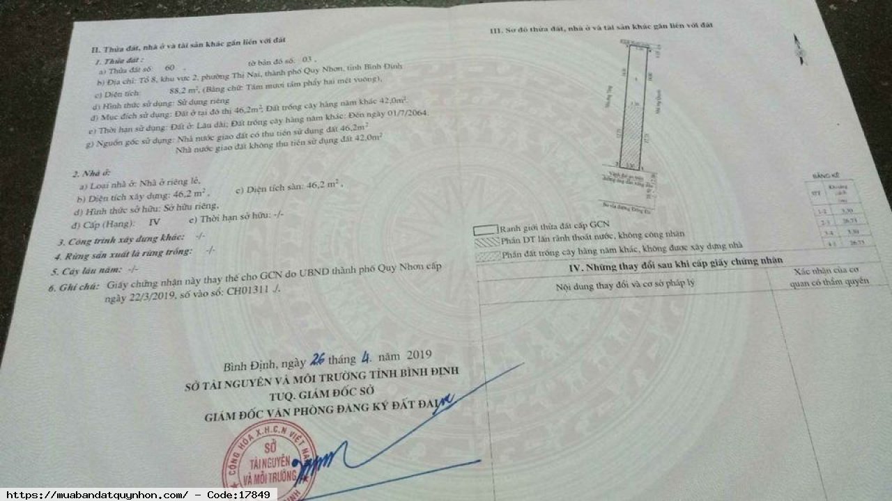 Bán nhà Mặt Tiền P. Thị Nại -TP Quy Nhơn - Diện tích: 80m2 - Hướng: Nam - Nhà cấp 4 mê lỡ - Pháp lý: sổ hồng - Giá bán: 4 tỷ500 thương lượng